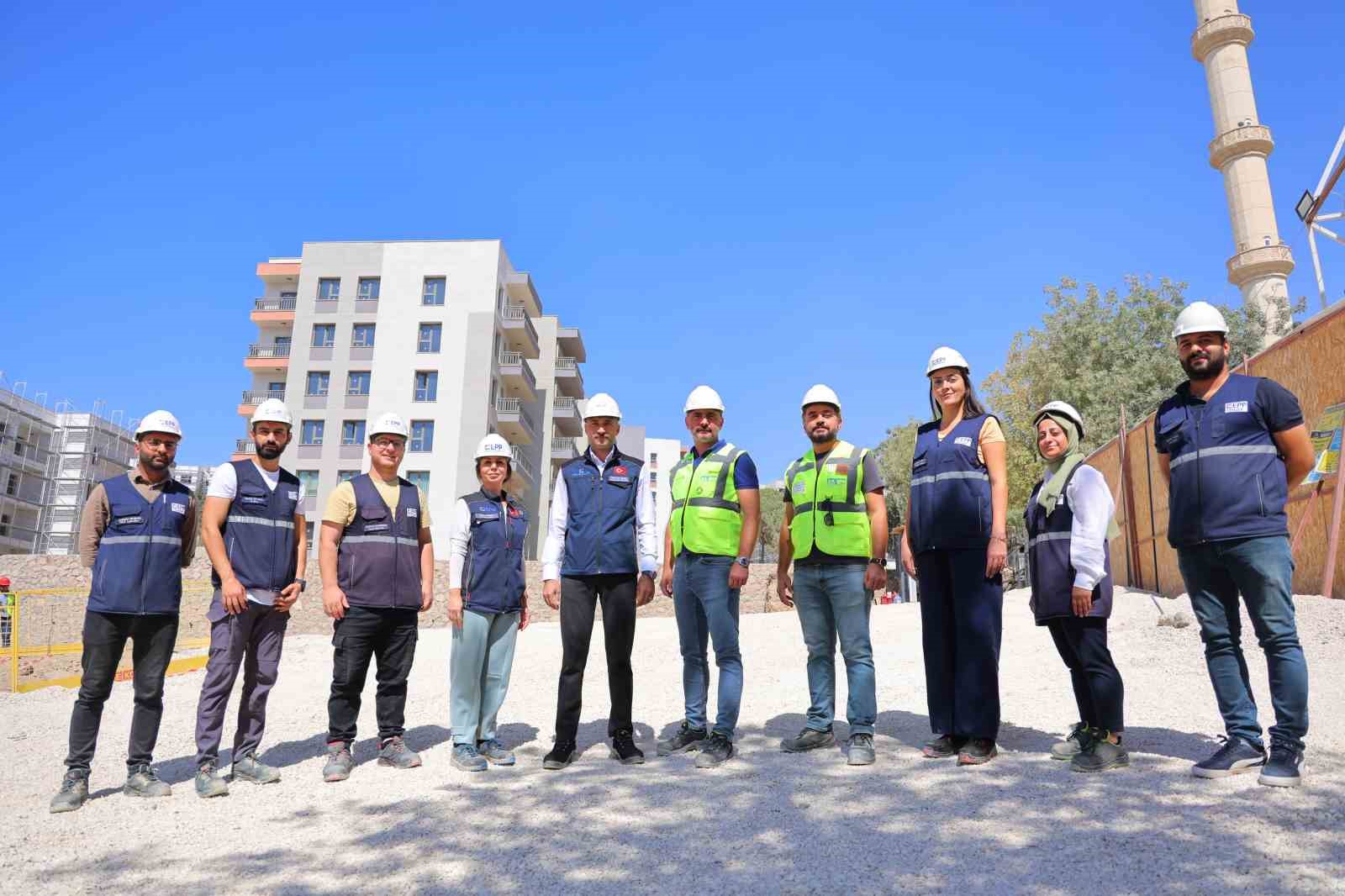 Kahramanmaraş merkezli meydana gelen depremler sonrası Doğukent Mahallesi’nde yapımı süren 28 bloktan oluşan 424 konut ve 42 ticari alanda çalışmalar hızla devam ediyor.