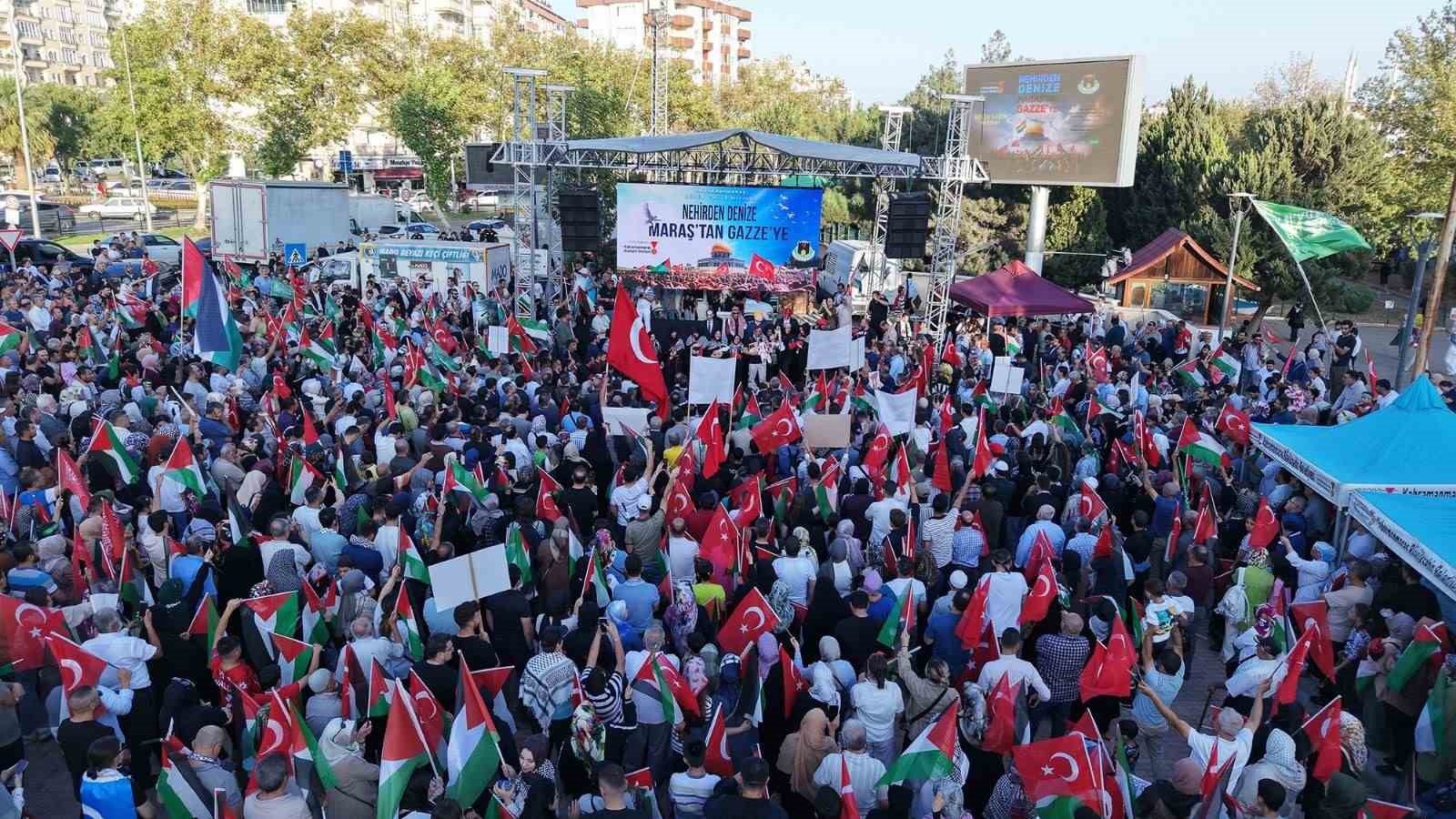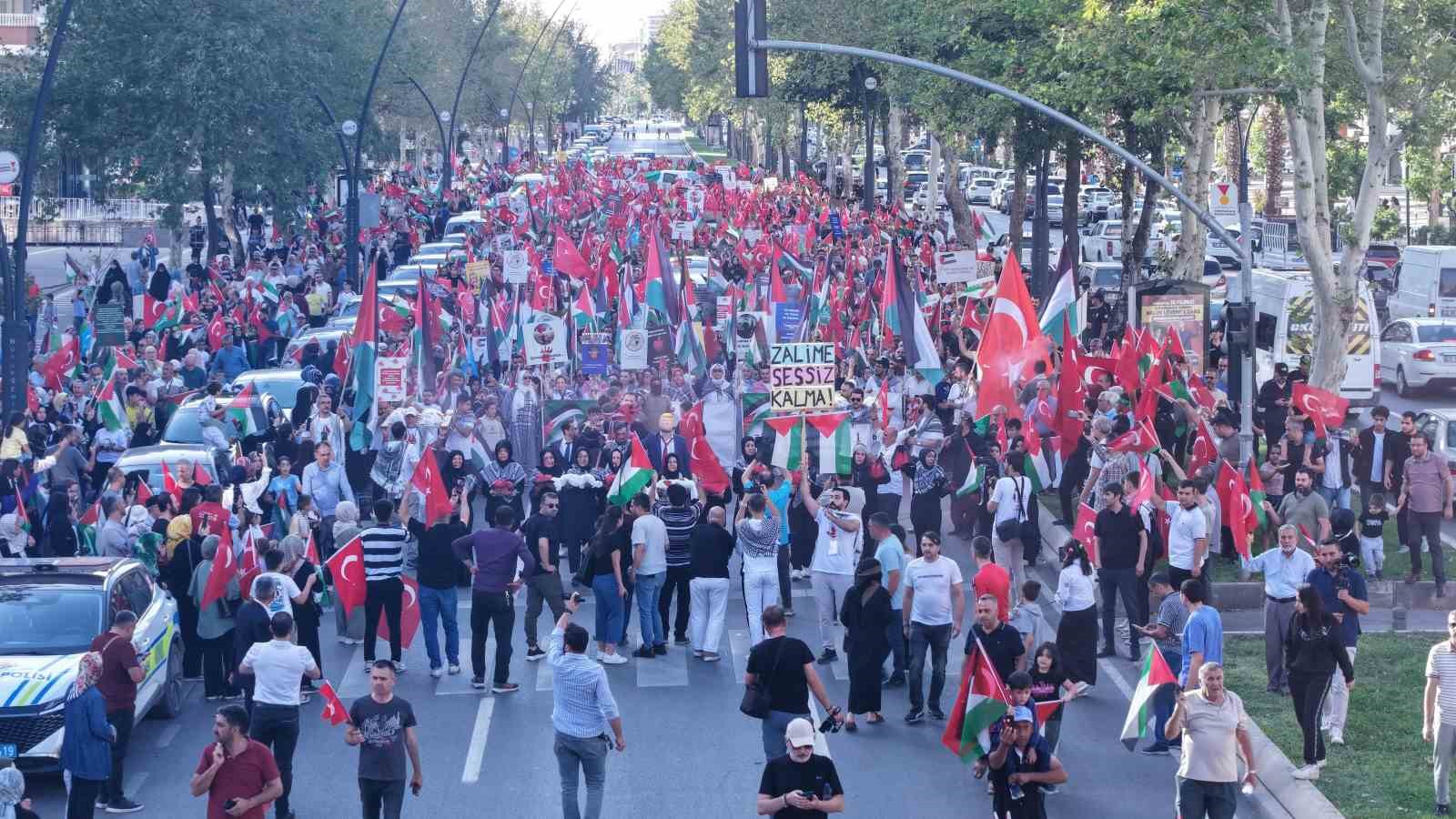 Kahramanmaraş’ta sivil toplum kuruluşları ve Büyükşehir Belediyesi öncülüğünde binlerce vatandaşın katılımı ile Filistin’e destek yürüyüşü düzenlendi.