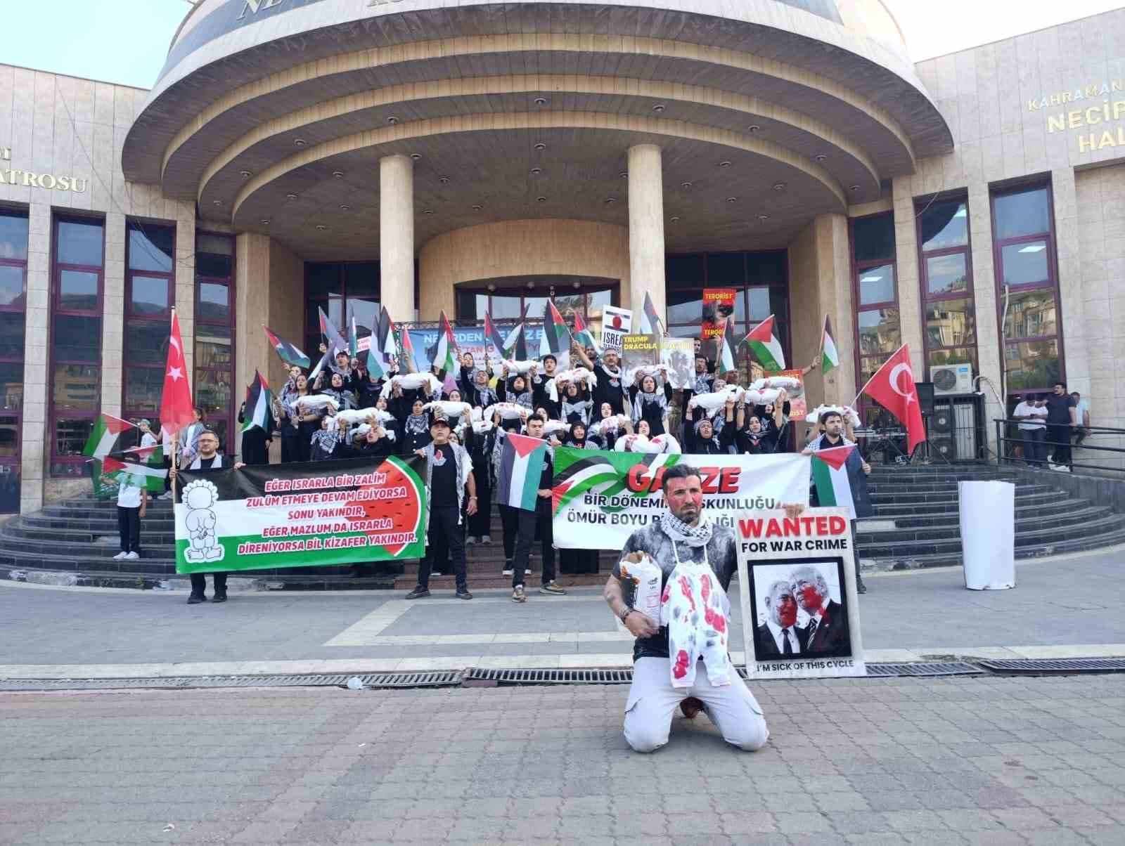 Kahramanmaraş Büyükşehir Belediyesinin çağrısıyla toplanan yüzlerce vatandaş, Necip Fazıl Kısakürek Kültür Merkezi önünde araçlarıyla bir araya geldi. Konvoy, Kayseri yolu güzergahında ilerlerken Filistin bayrakları açıldı, sirenler çalındı ve Gazze’ye yönelik saldırılar sloganlarla protesto edildi.