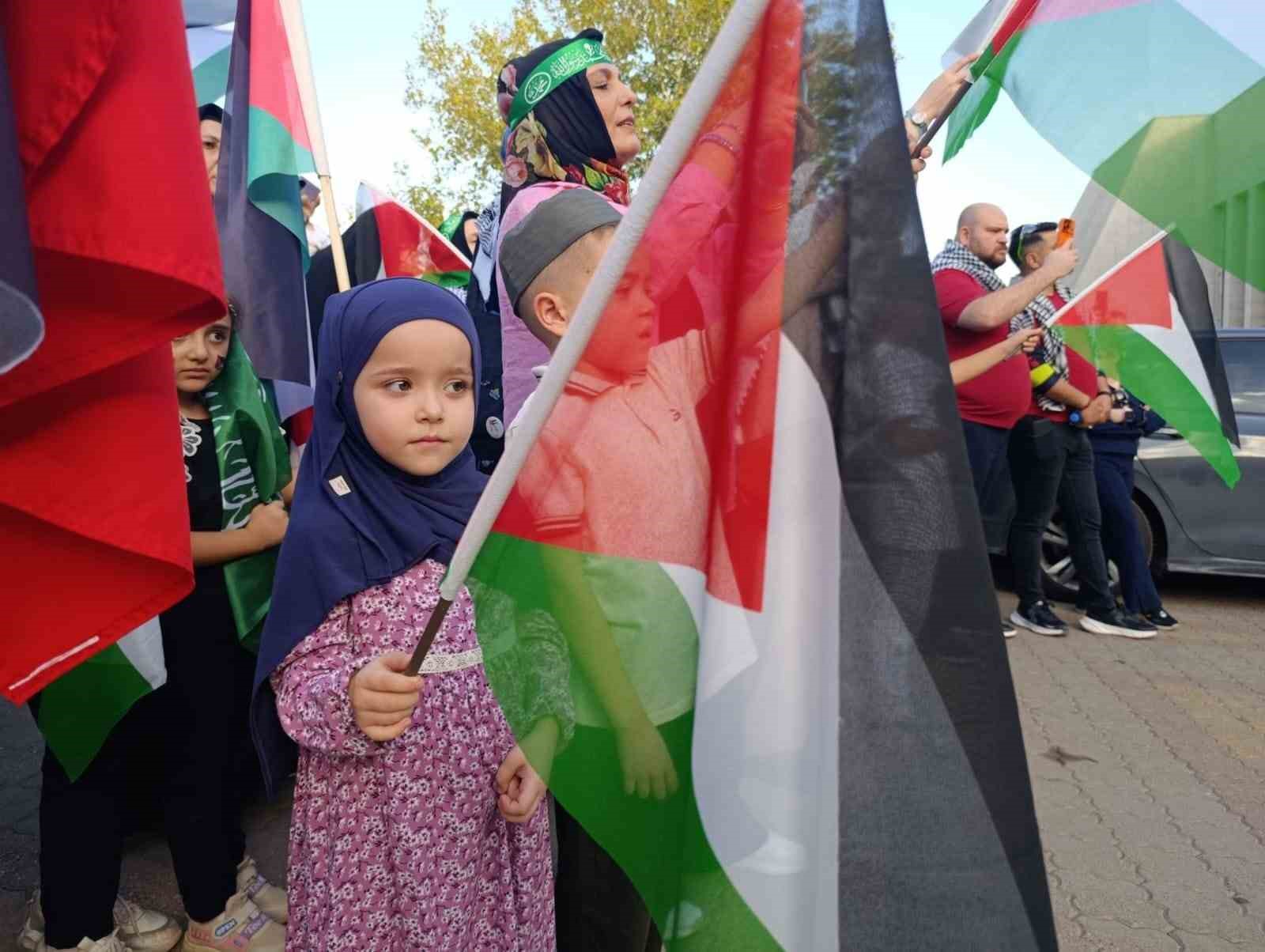 Basın açıklaması sırasında sık sık İsrail aleyhine sloganlar atılırken, yapılan toplu dua ve açıklamanın ardından kalabalık olaysız şekilde dağıldı.