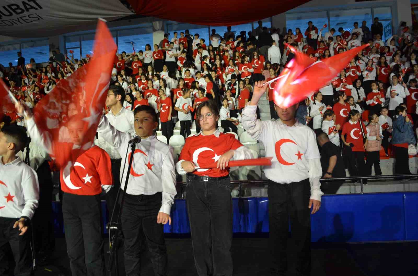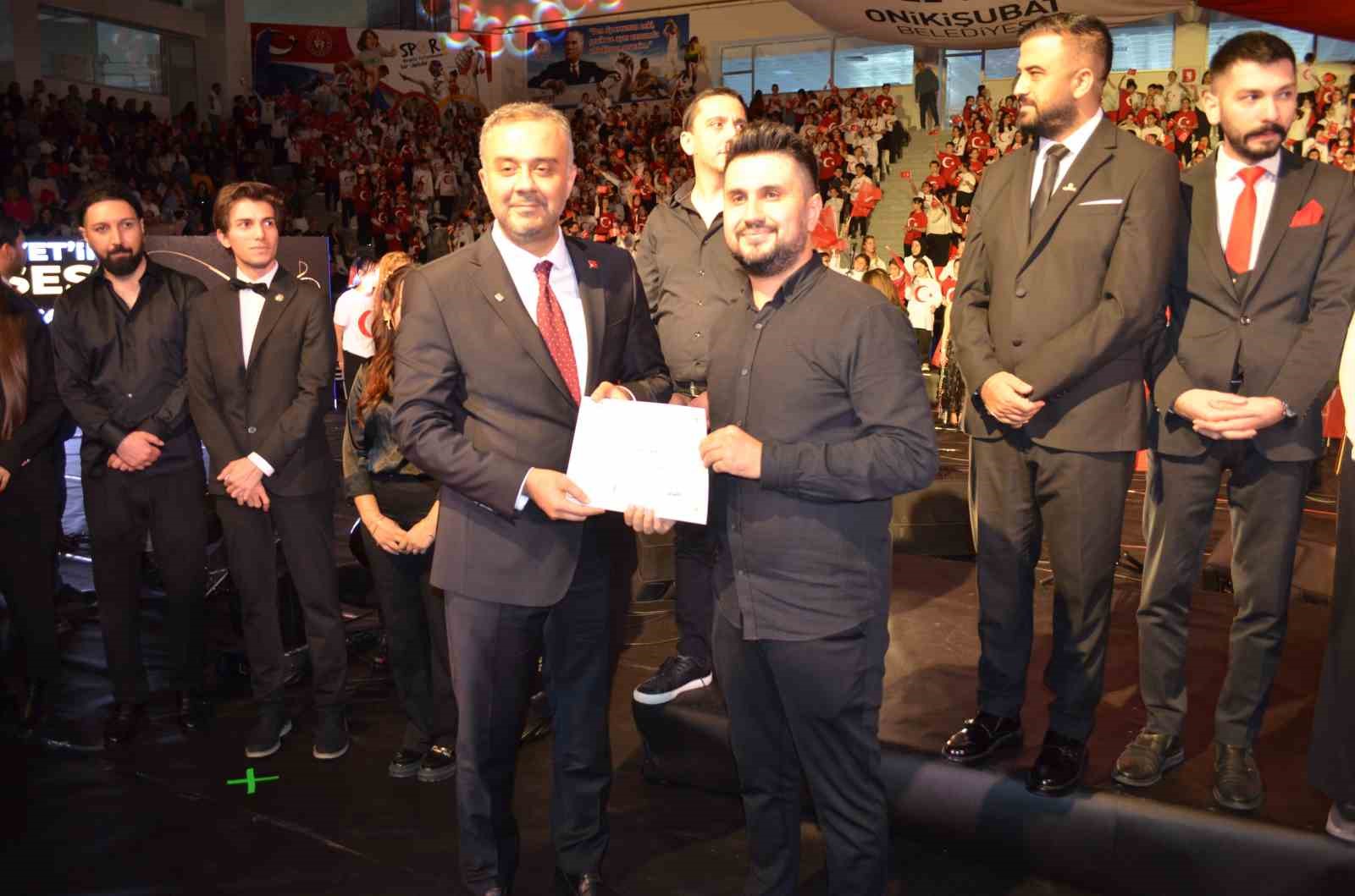 Onikişubat Belediyesi ev sahipliğinde Merkez Spor Salonu’nda halka açık düzenlenen konserin şefliğini Dr. Öğretim Üyesi Ezgi Tekgül ve Oğuz Canlı üstlendi. Onikişubat Belediye Başkanı Hanifi Toptaş, konserin Cumhuriyet’in coşkusunu müzikle yaşatacağını belirterek, coşkulu ve güzel bir program düzenlediklerini ifade etti. Toptaş, “Biz de Onikişubat Belediyesi ile güçlü bir ses vermek istedik. Güzel bir proje ortay koymuştuk. Farklı okullardan öğrencilerimizle birlikte 3 aydır bu çalışma yürütüldü ve bugün de taçlandı. Belki bu bir rekor da olabilir. Bin kişilik öğrenci topluluğumuzdan oluşan koroyu hemşehrilerimizle buluşturduk” dedi.