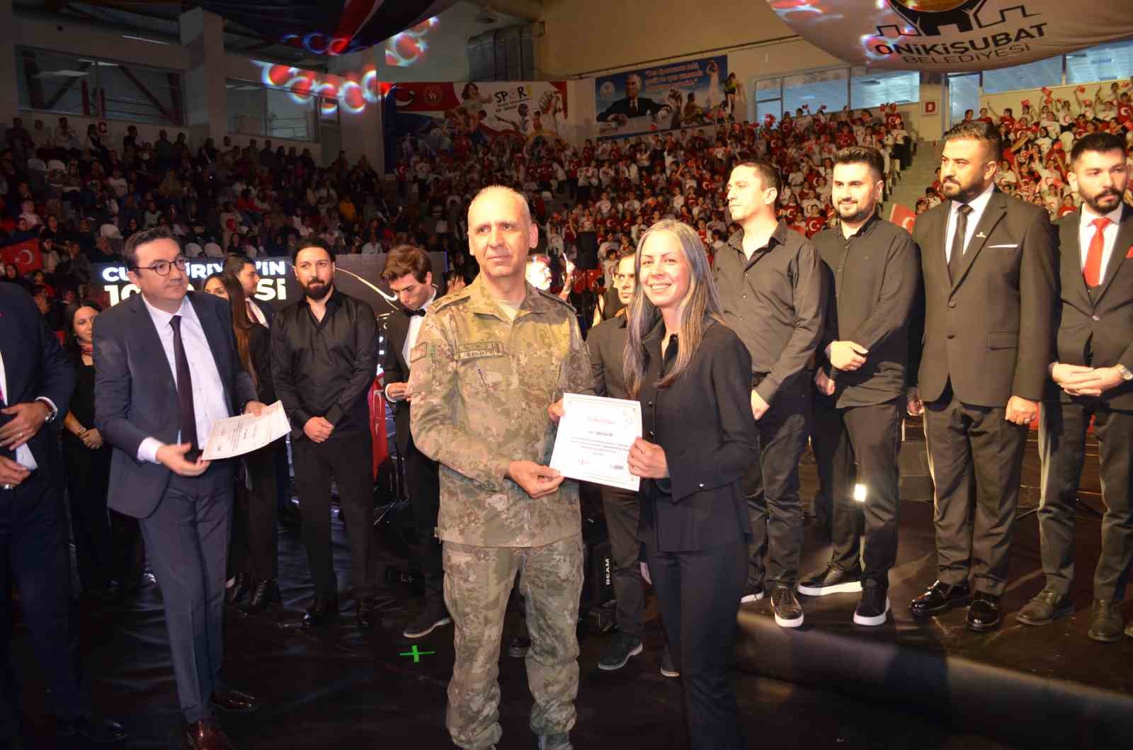 Kahramanmaraş’ın Onikişubat ilçesinde Cumhuriyet’in kuruluşunun 102’nci yıl dönümü kutlamaları kapsamında ‘Cumhuriyet’in 1000 Sesi’ konseri düzenlendi.